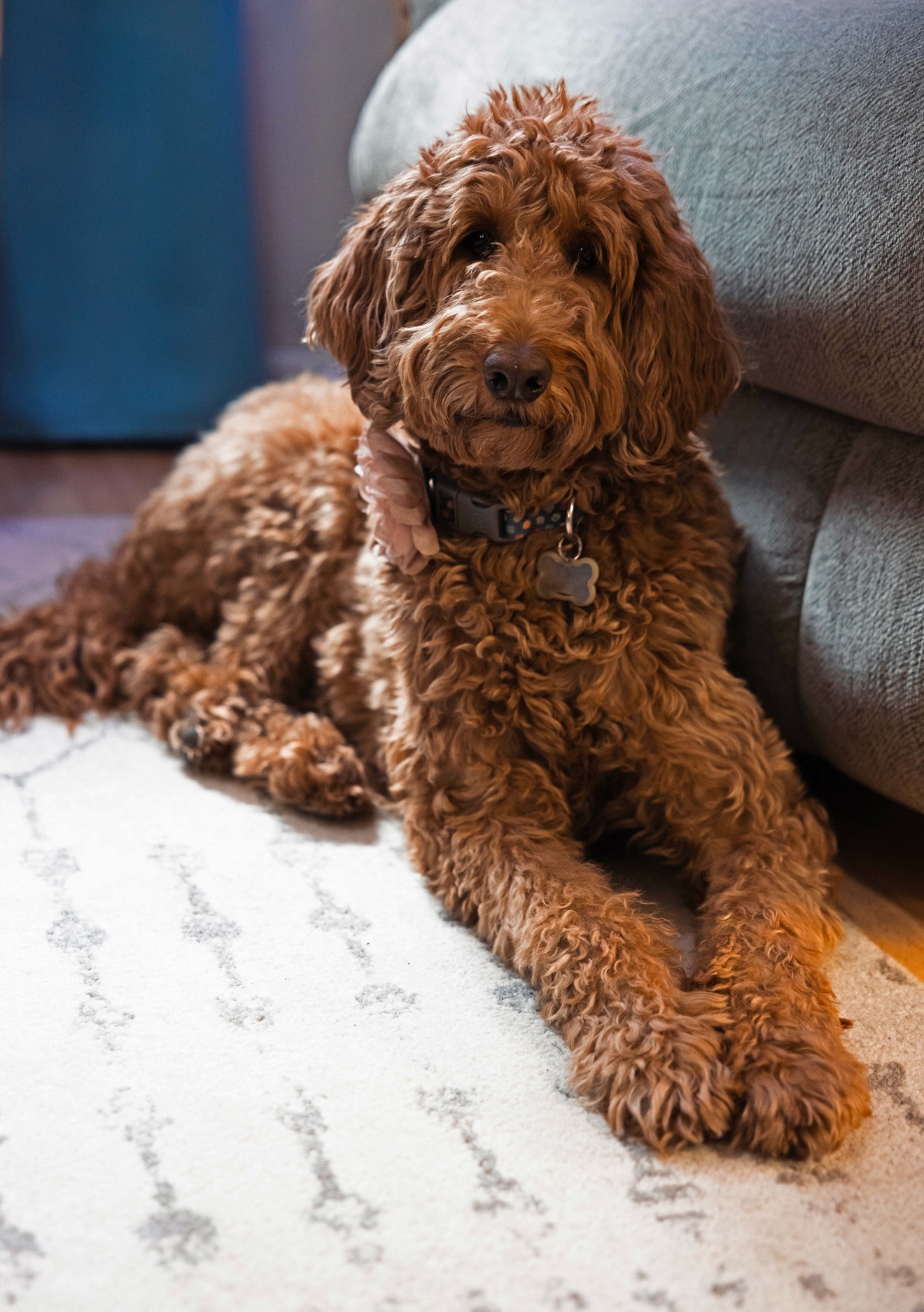 11-year-old-goldendoodle-portrait Image of a brown Goldendoodle with a pink flower around her neck, during a pet photography session Escribe un comentario Cancel reply Δ